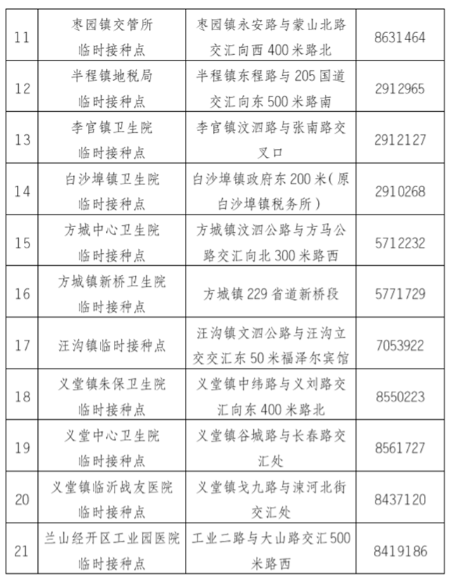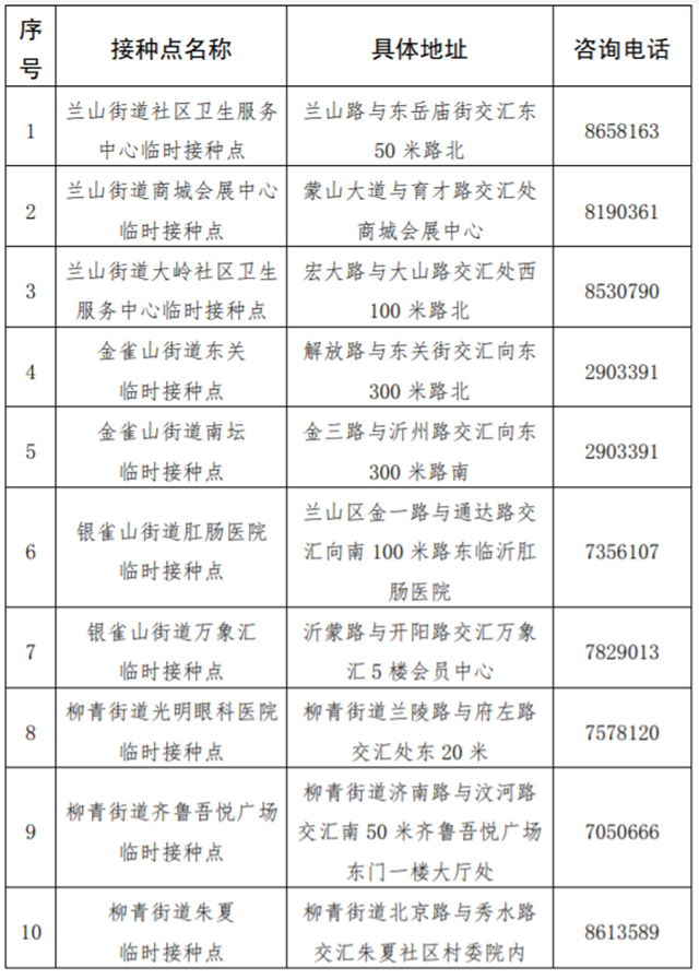 附件:兰山区新冠疫苗接种点相关情况一览表